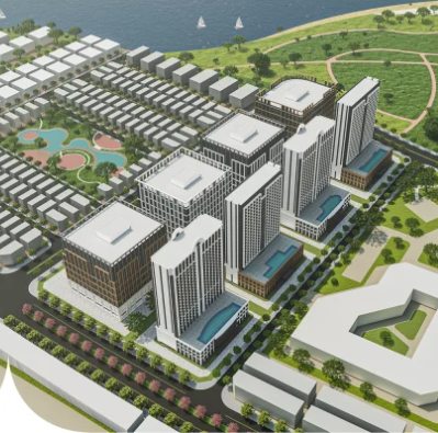 - 18 toà nhà dịch vụ – văn phòng – khách sạn: 18,83 ha, cao tối đa 25 tầng.