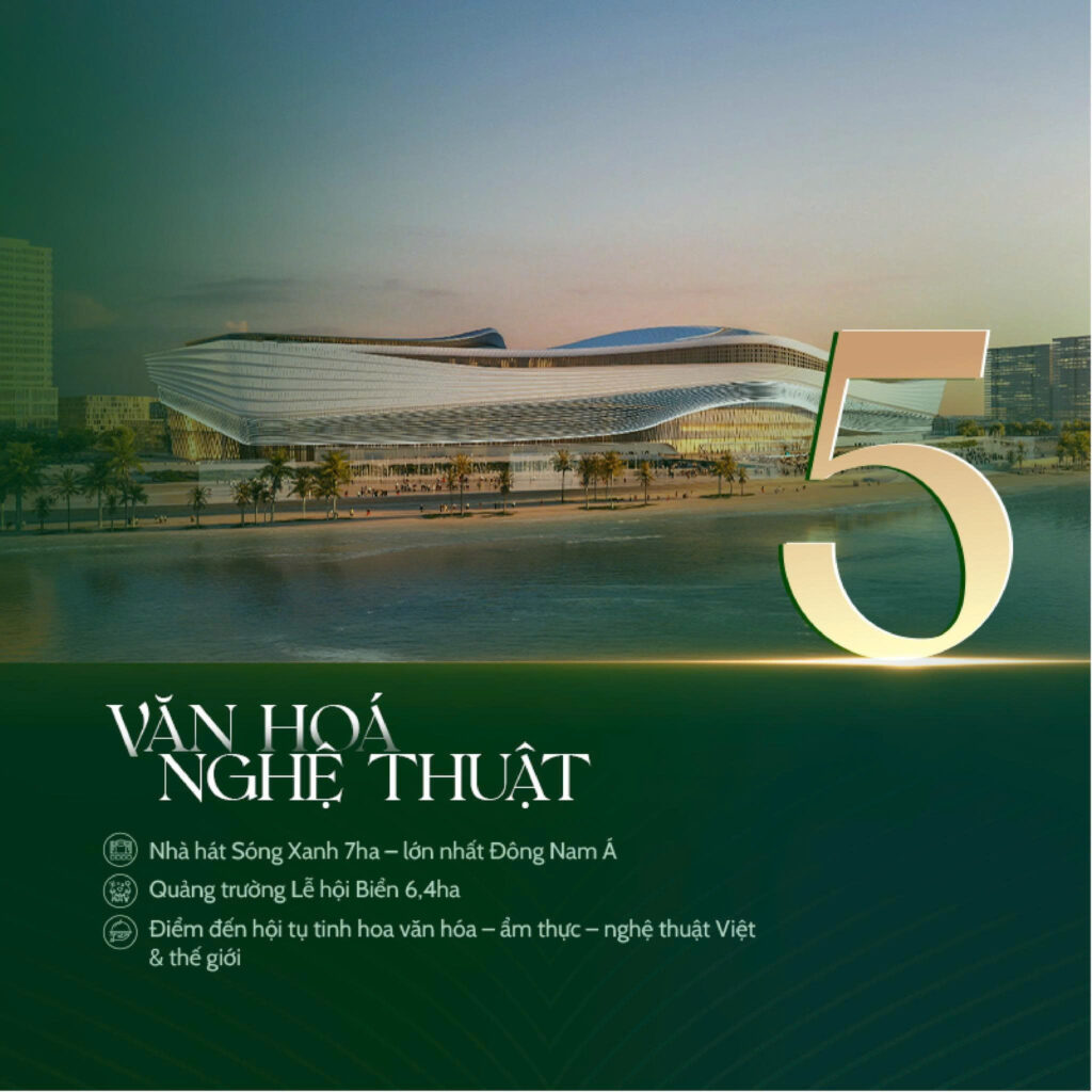 Nhà hát Sóng Xanh Blue Waves Theatre lớn nhất Đông Nam Á kiến trúc độc đáo bậc nhất thế giới, trải rộng trên diện tích 7ha, được tư vấn bởi Công ty tư vấn thiết kế nổi tiếng Gensler. Là nơi diễn ra các hoạt động văn hóa nghệ thuật đặc sắc với 02 nhà hát sang trọng, hoành tráng, tổng sức chứa 5000 chỗ ngồi; cùng với đó là khu hội nghị đẳng cấp quy mô 40 phòng; khu tiệc cưới sang trọng với 8 phòng tiệc lớn; khu triển lãm 45.000m²; quảng trường Nhà hát ngoài trời với sức chứa lên tới 30.000 người; khu nhà hàng và dịch vụ ẩm thực đa dạng, khu cảnh quan đồi cỏ, bãi cỏ đa năng xanh thư giãn.